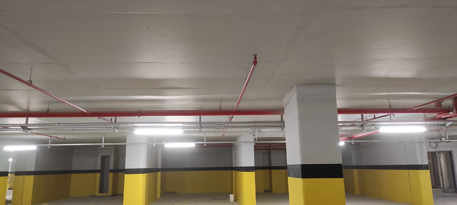 Otopark tavanında yer alan yangın söndürme sistemleri, elektrik tavaları, havalandırma kanalları ve aydınlatma armatürleri titizlikle maskelenerek korunur. Tesisatınıza tek bir damla boya değmeden süreç tamamlanır.